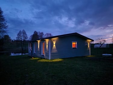 Medinis sodo namelis „ALV50“ – tai šiuolaikiškas pasirinkimas tiems, kurie vertina estetiką, funkcionalumą ir gyvenimą arčiau gamtos. Kompaktiškas, bet erdvus 50 m² ploto namelis su 44 mm storio medinėmis sienomis yra sukurtas patogiam poilsiui. 7,5 x 6,6 metrų išmatavimų konstrukcija leidžia patogiai išdėstyti dvi gyvenamąsias patalpas, bendrą virtuvės ir svetainės zoną bei vonios kambarį. Dideli langai į namelį įleidžia gausybę natūralios šviesos, o vitrininiai langai suteikia erdvei laisvės pojūtį. Tai – ne tik praktiškas, bet ir estetiškas sprendimas, puikiai tinkantis tiek sodybai, tiek ramiam kampeliui miške ar prie ežero. „ALV50“ – tai namelis, kuriame dera paprastumas, natūralumas ir komfortas