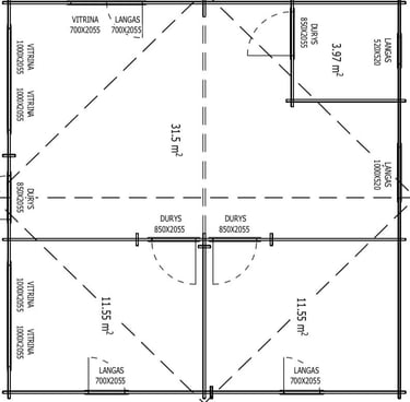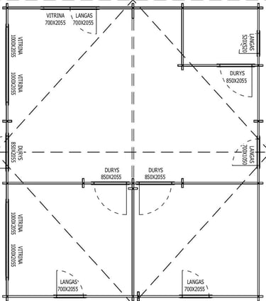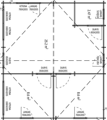 Medinis vasarnamis „ALV056“ – tai kompaktiškas, stilingas ir funkcionalus sprendimas poilsiui ar sezoniniam gyvenimui gamtos apsuptyje. Vasarnamis suprojektuotas taip, kad jame būtų patogu įrengti skirtingų funkcijų patalpas: du atskirus miegamuosius, vonios kambarį bei erdvią bendrą virtuvės ir svetainės zoną. Toks išdėstymas leidžia mėgautis tiek privatumu, tiek bendra erdve. Bendras nemodifikuoto vasarnamio plotas siekia 56 m², todėl jis yra pakankamai erdvus ir patogus 3–4 asmenų šeimai. Konstrukcijoje numatyti 5 atidaromi langai, kurie užtikrina puikią ventiliaciją ir natūralią šviesą, bei net 5 vitrininiai langai, kurie nesidarinėja, tačiau vizualiai atveria erdvę ir leidžia mėgautis vaizdais į aplinką. Vasarnamis „ALV056“ pasižymi ne tik racionaliu išplanavimu, bet ir jaukia estetika bei medinės architektūros šiluma. Tai – puikus pasirinkimas ieškantiems kokybiško, praktiško ir vizualiai patrauklaus statinio savo poilsiui.